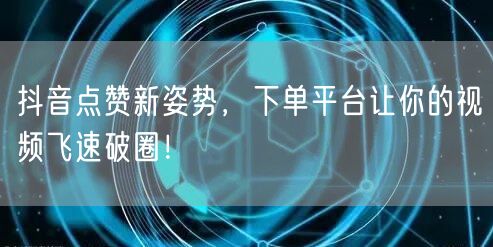 总之,想要快速提升抖音视频的点赞量,除了注重内容本身的质量和创意性外,还需要善于利用下单平台的推广服务。通过精准推送、多元化推广以及数据分析与优化等手段,让你的视频轻松实现飞速破圈!