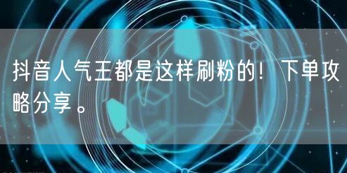 抖音人气王都是这样刷粉的!下单攻略分享。