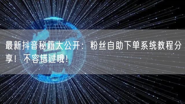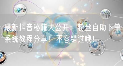 最新抖音秘籍大公开:粉丝自助下单系统教程分享!不容错过哦!
