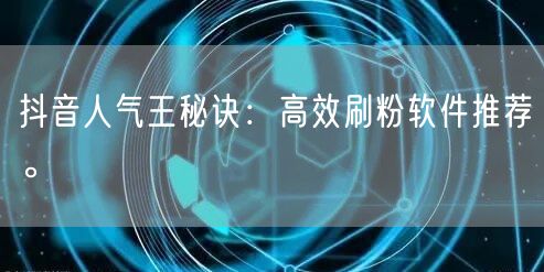 抖音人气王秘诀:高效刷粉软件推荐。