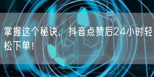 掌握这个秘诀,抖音点赞后24小时轻松下单!