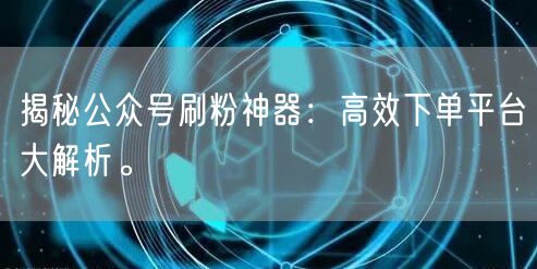 揭秘公众号刷粉神器:高效下单平台大解析。