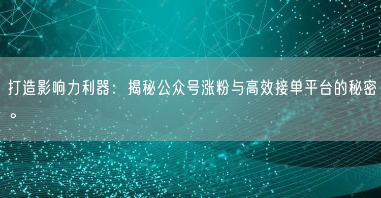 打造影响力利器:揭秘公众号涨粉与高效接单平台的秘密。