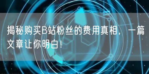 揭秘购买B站粉丝的费用真相,一篇文章让你明白!