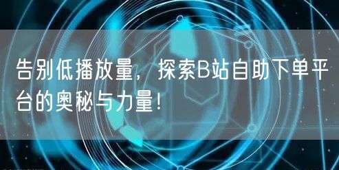 告别低播放量,探索B站自助下单平台的奥秘与力量!