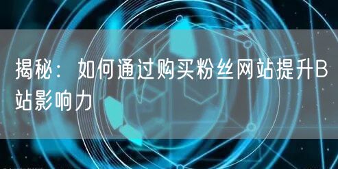 在当今数字化时代,社交媒体平台的影响力日益凸显。作为中国的领先视频分享平台之一,B站在年轻人中的影响力尤为显著。许多用户希望通过提升自己在B站的粉丝数量来增加自身影响力。本文将揭秘如何通过购买粉丝网站来提升B站影响力。