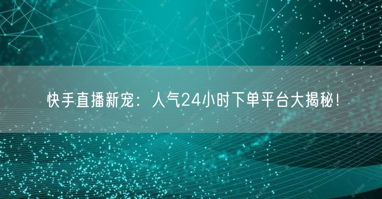 本文为你揭示了快手直播新宠:人气24小时下单平台的独特魅力和优势,并提供了如何把握商机的建议。希望对你有所帮助,让你在快手直播的舞台上开启全天候盈利新模式。