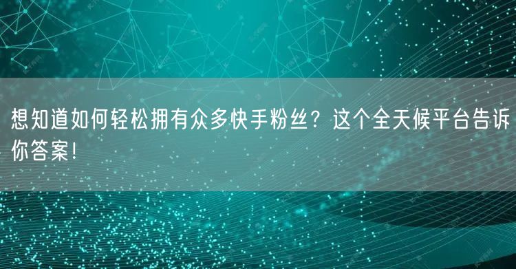 想知道如何轻松拥有众多快手粉丝?这个全天候平台告诉你答案!