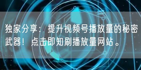 独家分享:提升视频号播放量的秘密武器!点击即知刷播放量网站。