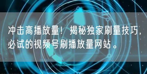 关键词:视频号刷播放量、独家刷量技巧、高播放量秘籍、刷量网站推荐、视频推广策略