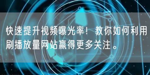 快速提升视频曝光率!教你如何利用刷播放量网站赢得更多关注。