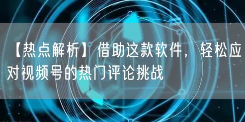 【热点解析】借助这款软件,轻松应对视频号的热门评论挑战