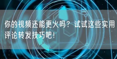 你的视频还能更火吗?试试这些实用评论转发技巧吧!