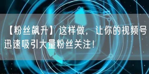 【粉丝飙升】这样做,让你的视频号迅速吸引大量粉丝关注!