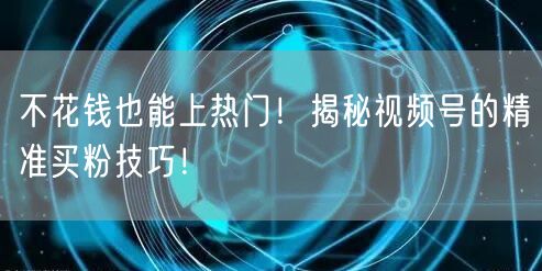 在当今社交媒体火热的时代,视频号作为内容创作的新舞台,吸引了无数创作者的目光。如何在这个竞争激烈的市场中脱颖而出,吸引更多粉丝的关注,成为了每个创作者追求的目标。本文将揭秘一些不花钱也能上热门的精准买粉技巧,帮助你在视频号领域获得更多关注和成功。