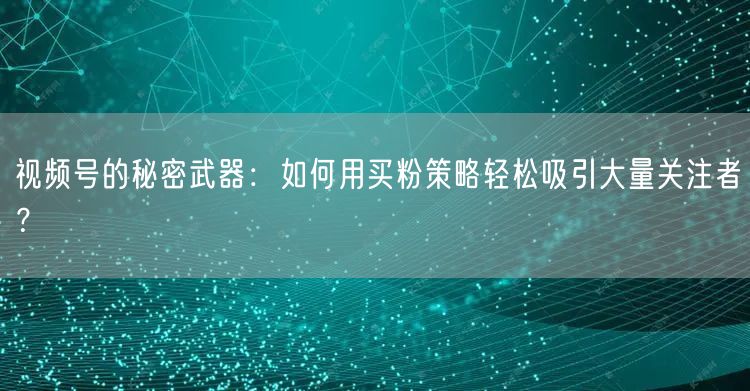 视频号的秘密武器:如何用买粉策略轻松吸引大量关注者?