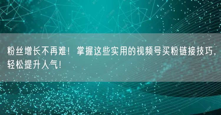 粉丝增长不再难!掌握这些实用的视频号买粉链接技巧,轻松提升人气!