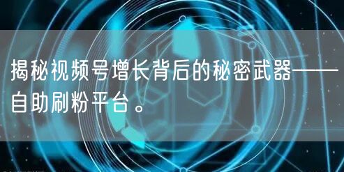 揭秘视频号增长背后的秘密武器——自助刷粉平台。