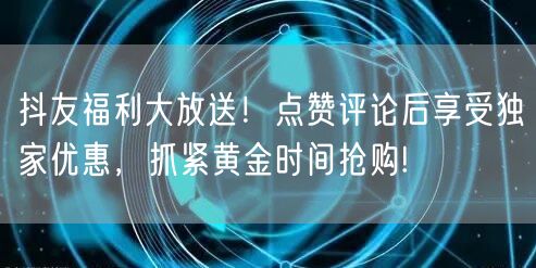 抖友福利大放送!点赞评论后享受独家优惠,抓紧黄金时间抢购!