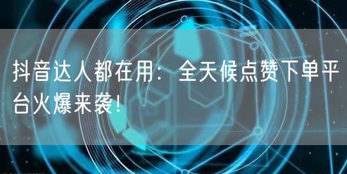 抖音达人都在用:全天候点赞下单平台火爆来袭!