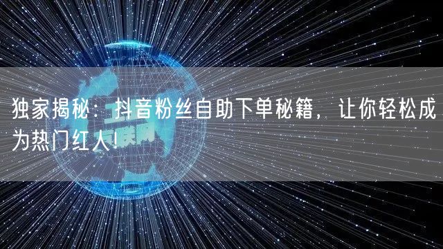 总之,通过本文独家揭秘的抖音粉丝自助下单秘籍,相信你也能轻松成为热门红人!赶快行动吧!
