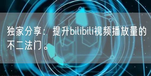 独家分享:提升bilibili视频播放量的不二法门。
