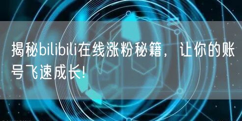 揭秘bilibili在线涨粉秘籍,让你的账号飞速成长!